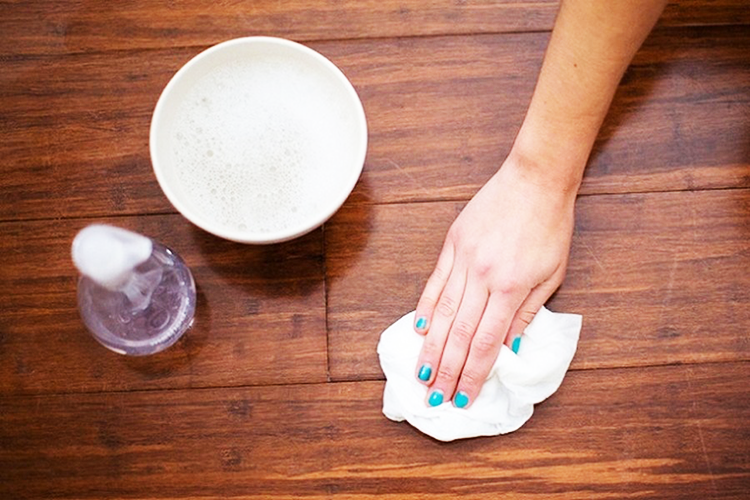 Xịt dung dịch lên một miếng vải mềm (microfiber) và lau khắp bề mặt gỗ – bạn sẽ thấy mặt gỗ sáng bóng trở lại ngay lập tức. Dung dịch này vừa làm sạch lại vừa làm bóng mặt gỗ, vì giấm cũng có tác dụng tẩy rửa.