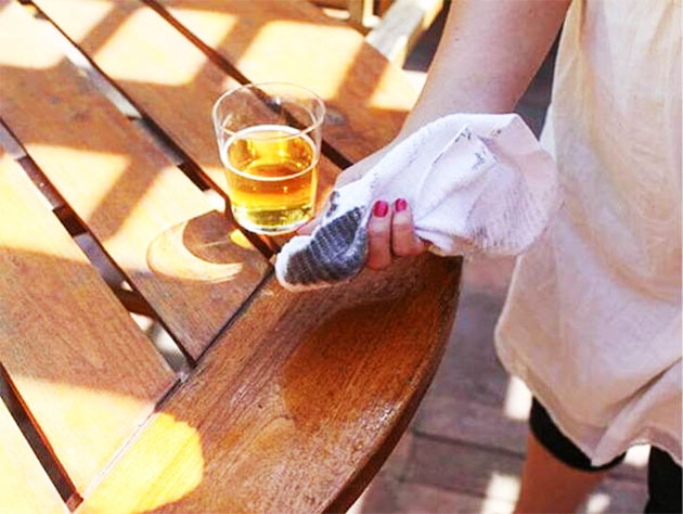 Bề mặt gỗ hở thì phải tránh không được để bị ướt và nên đổ thuốc tẩy ra vải trước, chứ không đổ trực tiếp lên đồ nội thất gỗ.